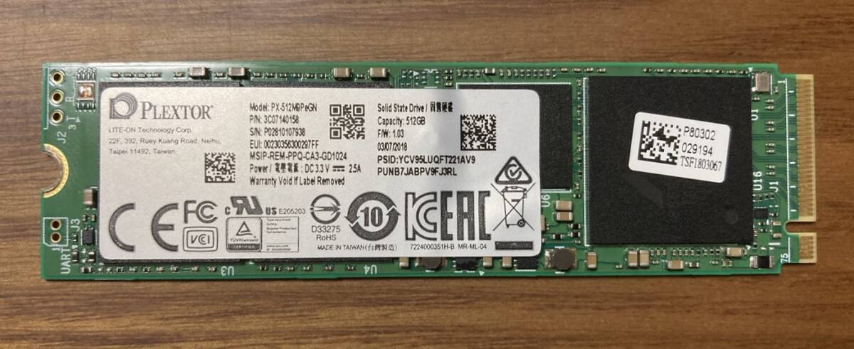 - 【状態◎】Plextor プレクスター PX-512M9PeGN(M.2・2280 PCI-Expressタイプ SSD 512GB/使用時間:8700時間未満)