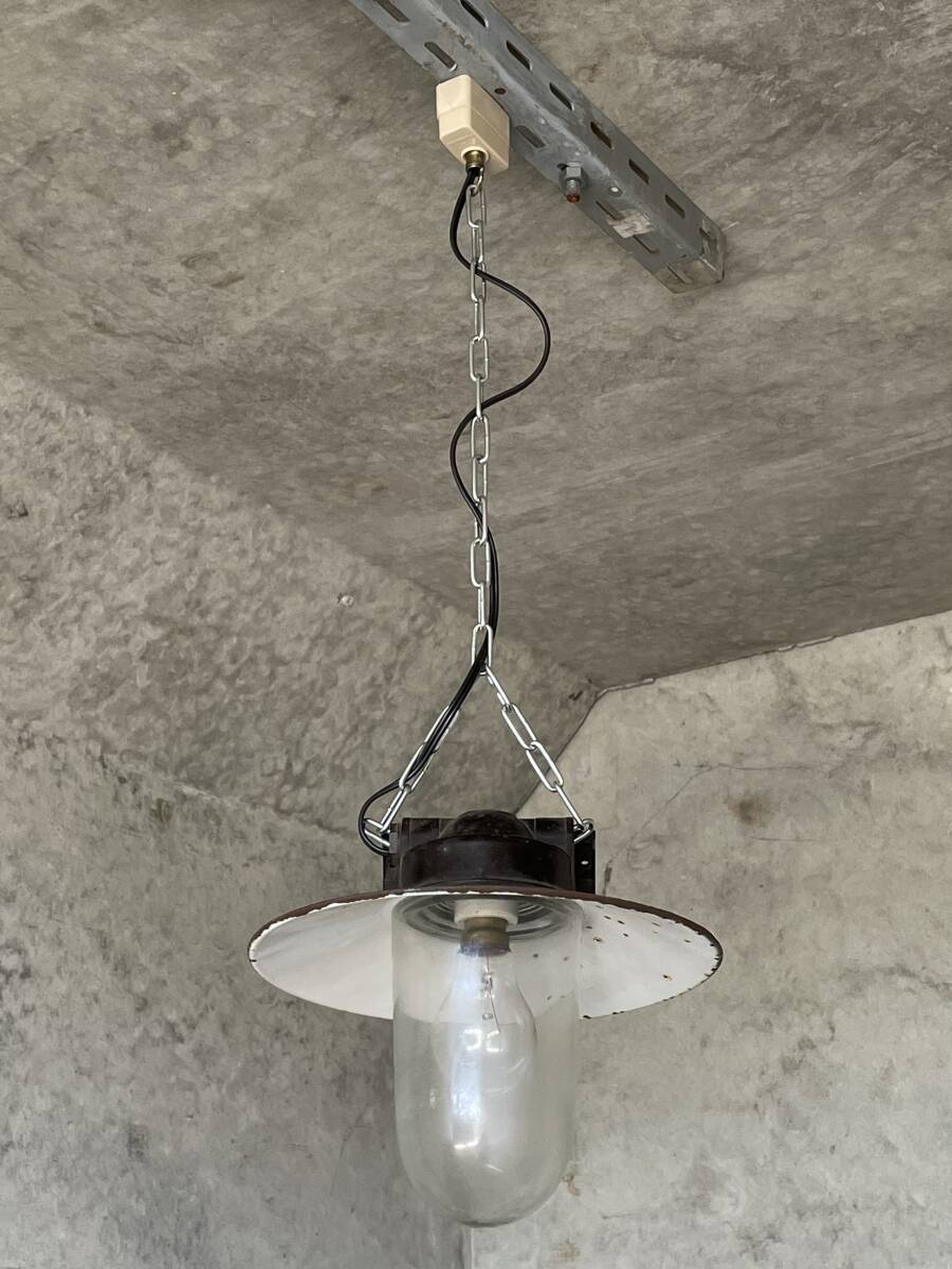 - フランスアンティーク ガラスカバー ホーロー ランプシェード ビンテージ ペンダントランプ 吊り下げ ランプ インダストリアル 古民家