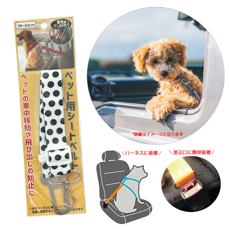 - ペット用シートベルト ドット 小型・中型犬用 38~62cm 飛び出し防止に 猫不可 ハーネスに着用 ハイハイ HH-1032