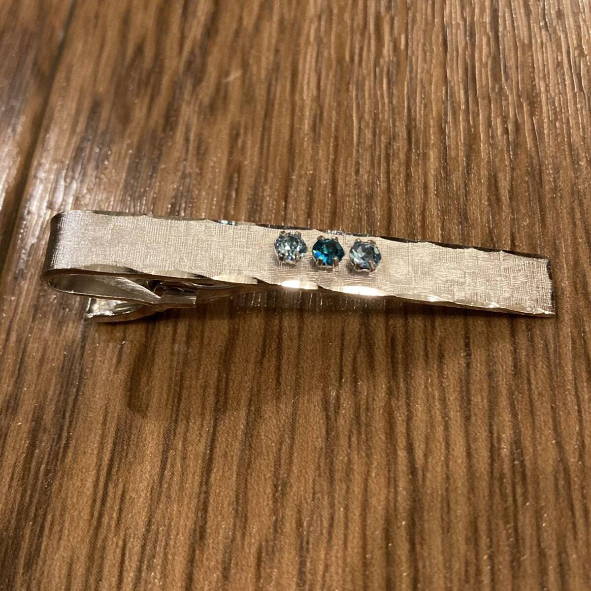 - 送料無料 US ヴィンテージ ネクタイピン 1/20 12K G. F. 三連ラインストーン シルバートーン