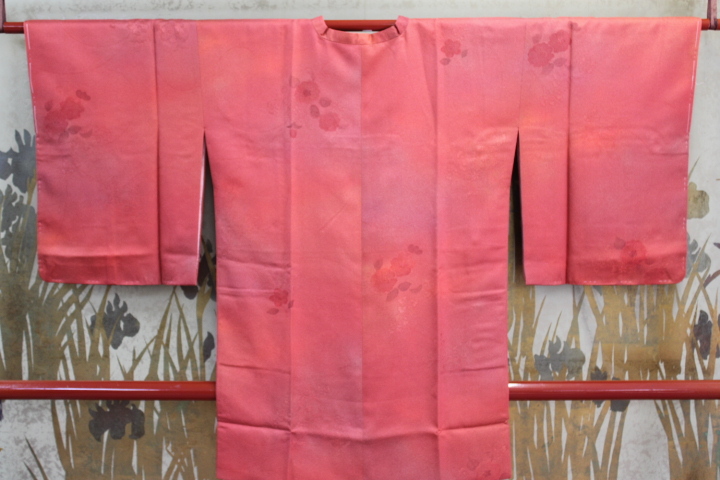 - きもの今昔7012 道行コートコレクション 正絹高級紋意匠生地 椿の地文様に地紋起こし加工 コート丈89cm