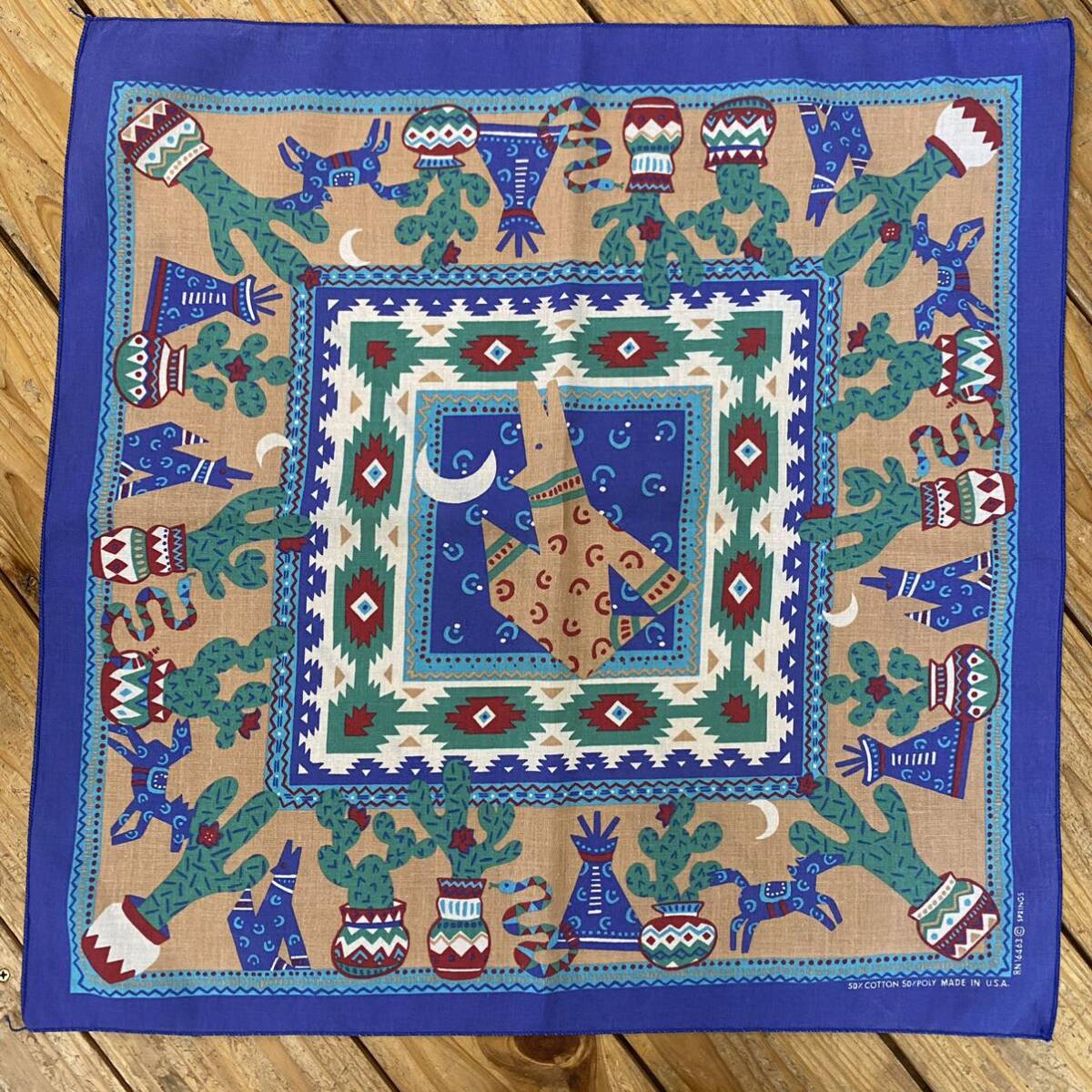 - 送料無料 Vintage ネイティブ柄 狼 オオカミ サボテン バンダナ アメリカ仕入れ 雑貨 ハンカチ 可愛い キュート ヴィンテージ A1179