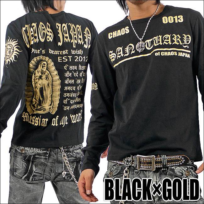 - 【Chaostheory】SUN/バックマリア英字プリントロンT【ブラック×ゴールド】【ch-ry-1003】新品M