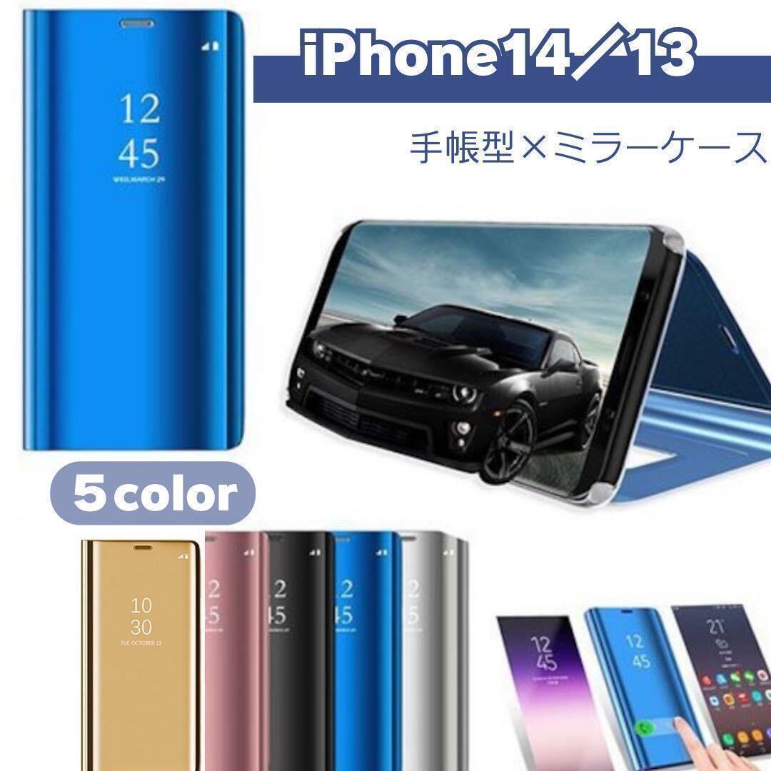 - iPhone14 13カバー ケース 手帳型 ミラー