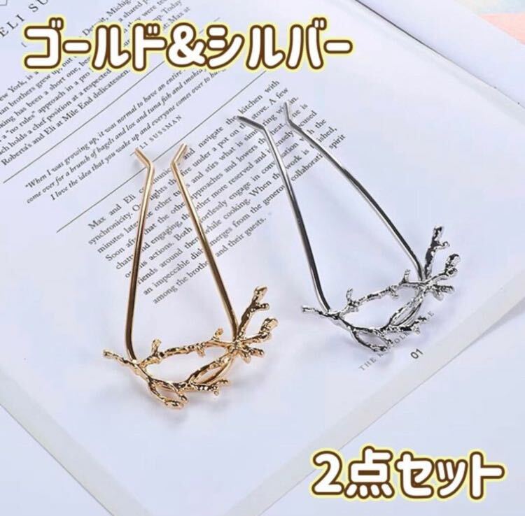 - ◆2点セット◆ヘアフォーク ゴールド&シルバー 髪飾り 和装 洋装 サンゴモチーフ 結婚式 パーティー デート 七五三 プチプラ 新品