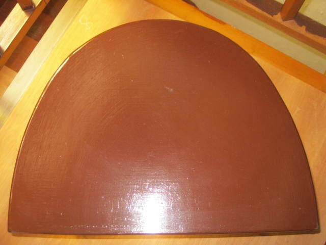 - <昭和レトロ半月型テーブル創作手塗り塗装ワインブラウンUSEDリノベーション新品金冠脚>