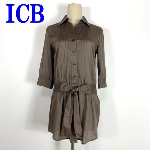 > ICB アイシービー 長袖ボタンシャツワンピースグレーカジュアル 薄手 透け感有 紐リボン チュニック チャコールグレー 9 C17