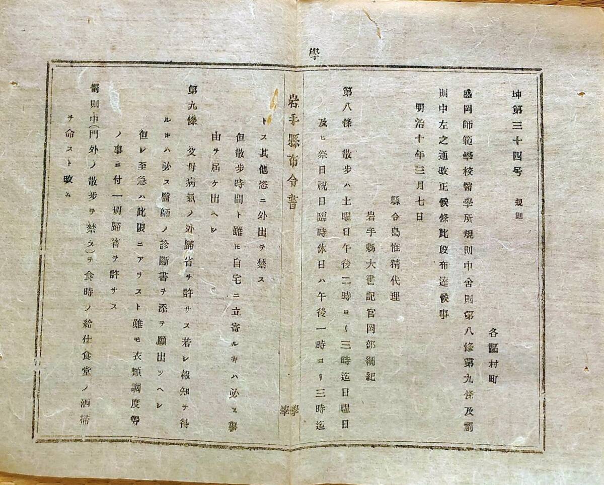 - f24052513〇明治布告布達 盛岡師範学校医学所規則 岩手県布令書 明治9年〇和本古書古文書