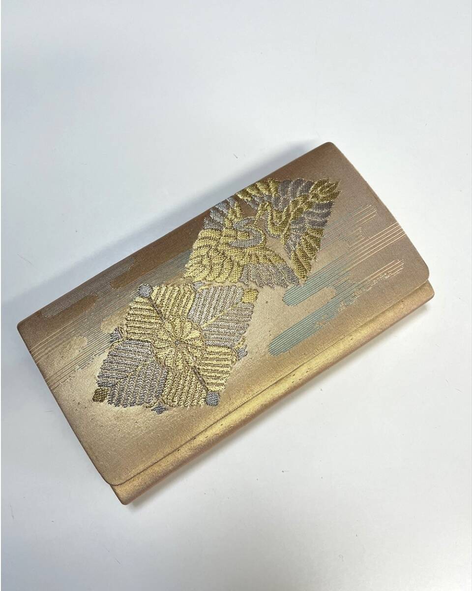 - 花とら●リサイクル和装小物 着物バッグ 金 フォーマル 留袖にも むかい鶴 240505