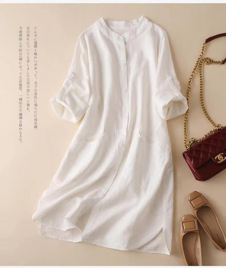 > LRM1434★新品リネンワンピース ペチワンピース ロング 夏 ワンピース レディース 麻 vネック ゆったり 体型カバー M~2XL