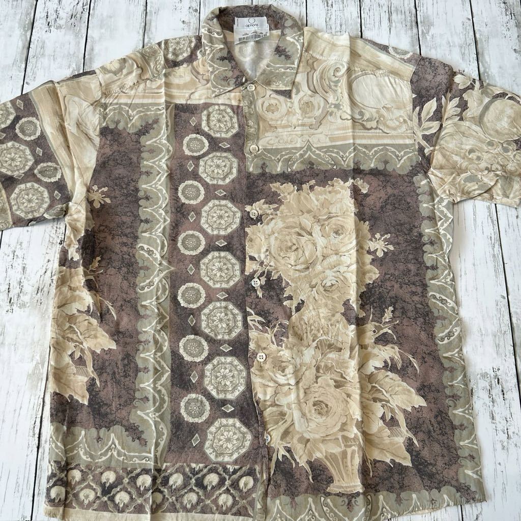 - ITALY製 OPTIONS 総柄 柄シャツ 花 フルーツ 天使 レトロ アート ビンテージ 半袖シャツ