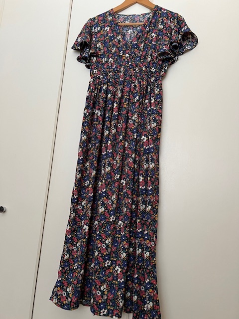 - 花柄 ロング ワンピース カシュクール フリル袖 半袖 ボヘミアン 送料無料