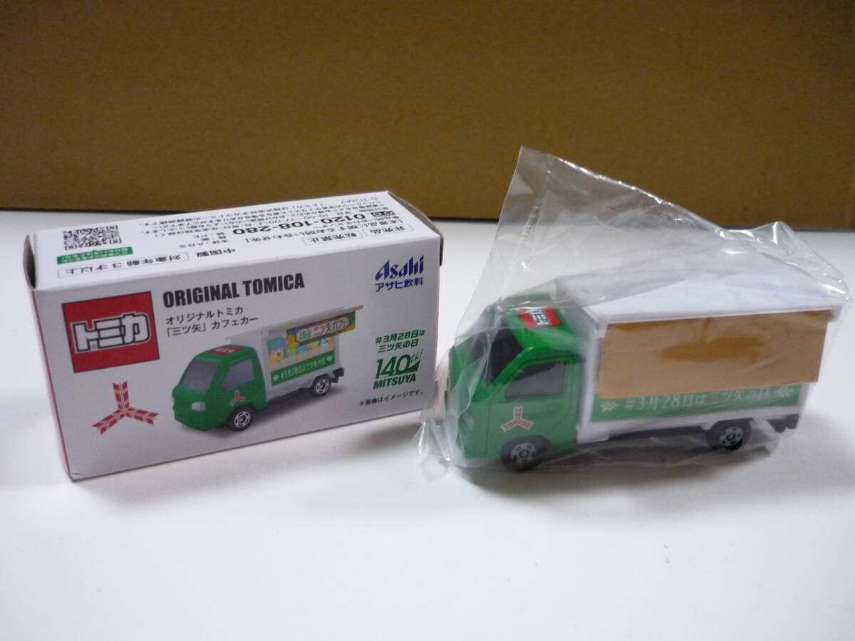 - [管01]【送料無料】ミニカー 三ツ矢 カフェカー(グリーン×ホワイト) 「オリジナルトミカ」 タカラトミー ミニチュア
