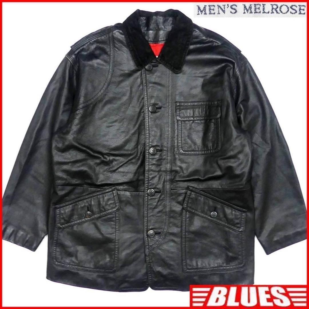 - 即決★MELROSE★メンズM レザーコート メルローズ 黒 本革 ジャケット 本皮 ステンカラーコート 革ジャン ライナー付き