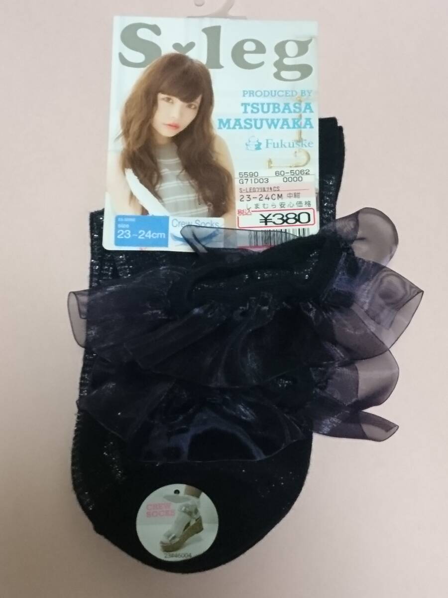 > しまむら S leg エスレグ レース付き クルーソックス 23~24cm ブラック クロ 黒 ラメ ロリータ ロリィタ 靴下