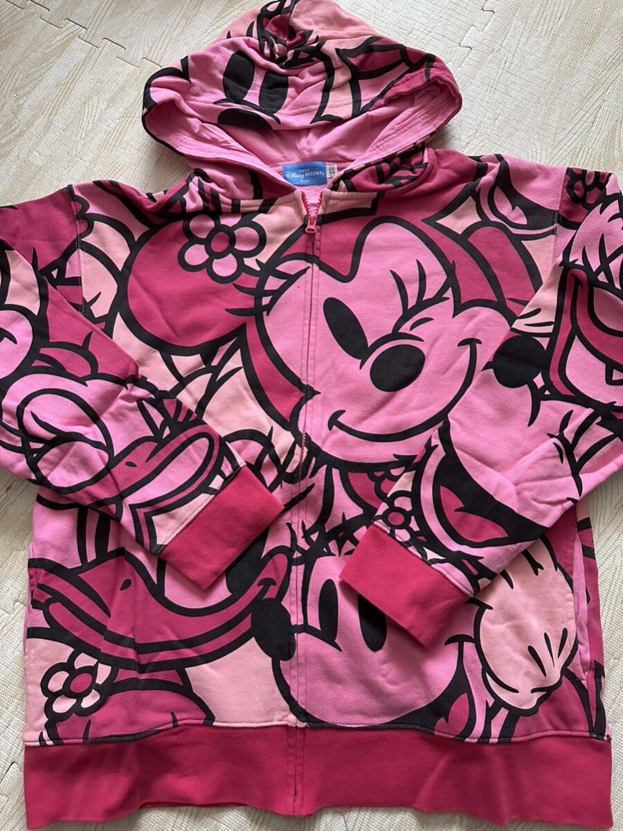 > ディズニーリゾート ミニー&デイジー パーカー ピンク LL 美品 フーディー ジップアップパーカー ミッキー ドナルド