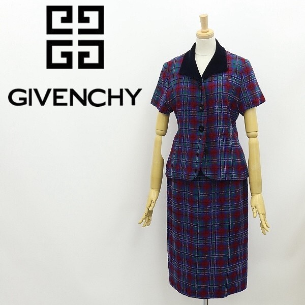 > ヴィンテージ◆GIVENCHY ジバンシィ チェック柄 襟ベルベット ウール ジャケット&スカート スーツ セットアップ 10