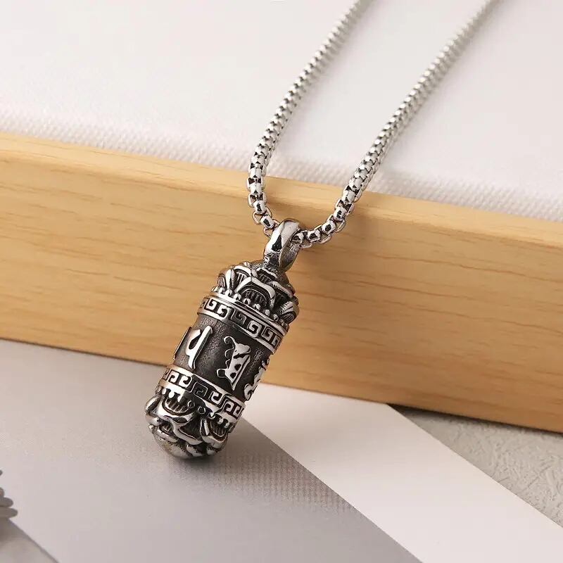 - 梵字柄 ネックレス ステンレス製 和柄 アクセサリー HIPHOP B系 ヤクザ ヤンキー 悪羅悪羅 チンピラ 派手 メンズ ファッション