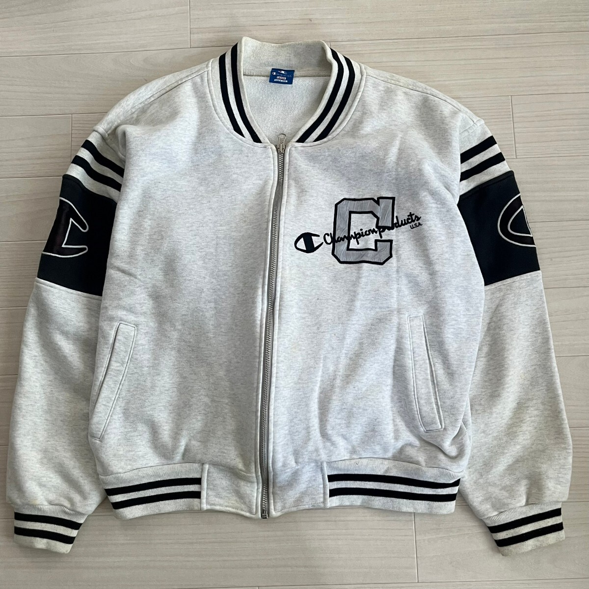 > Champion チャンピオン スウェットブルゾン ロゴ刺繍入り ブルゾン グレー ジップアップ サイズL vintage