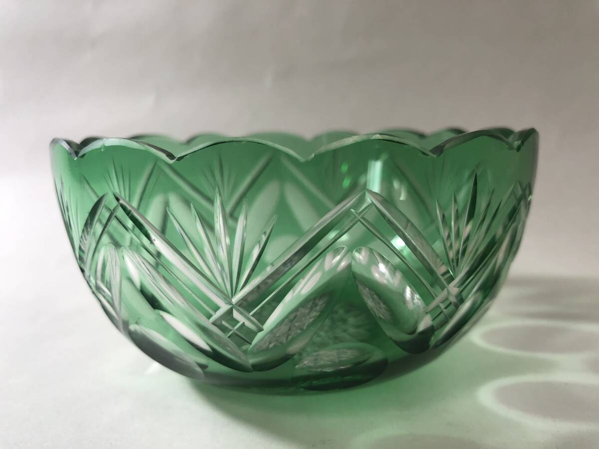 - 西洋ガラス ボヘミアンガラス グリーン色被せガラス ボール 鉢 サラダボール 西洋ガラス ガラス雑貨
