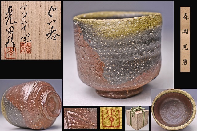> 森岡光男 ★ ぐい呑 ★ 共箱共布栞 ★ 備前焼風 ★ キズに見えるがキズでない ★ 森岡宏 氏と兄弟 ★ 酒器 盃