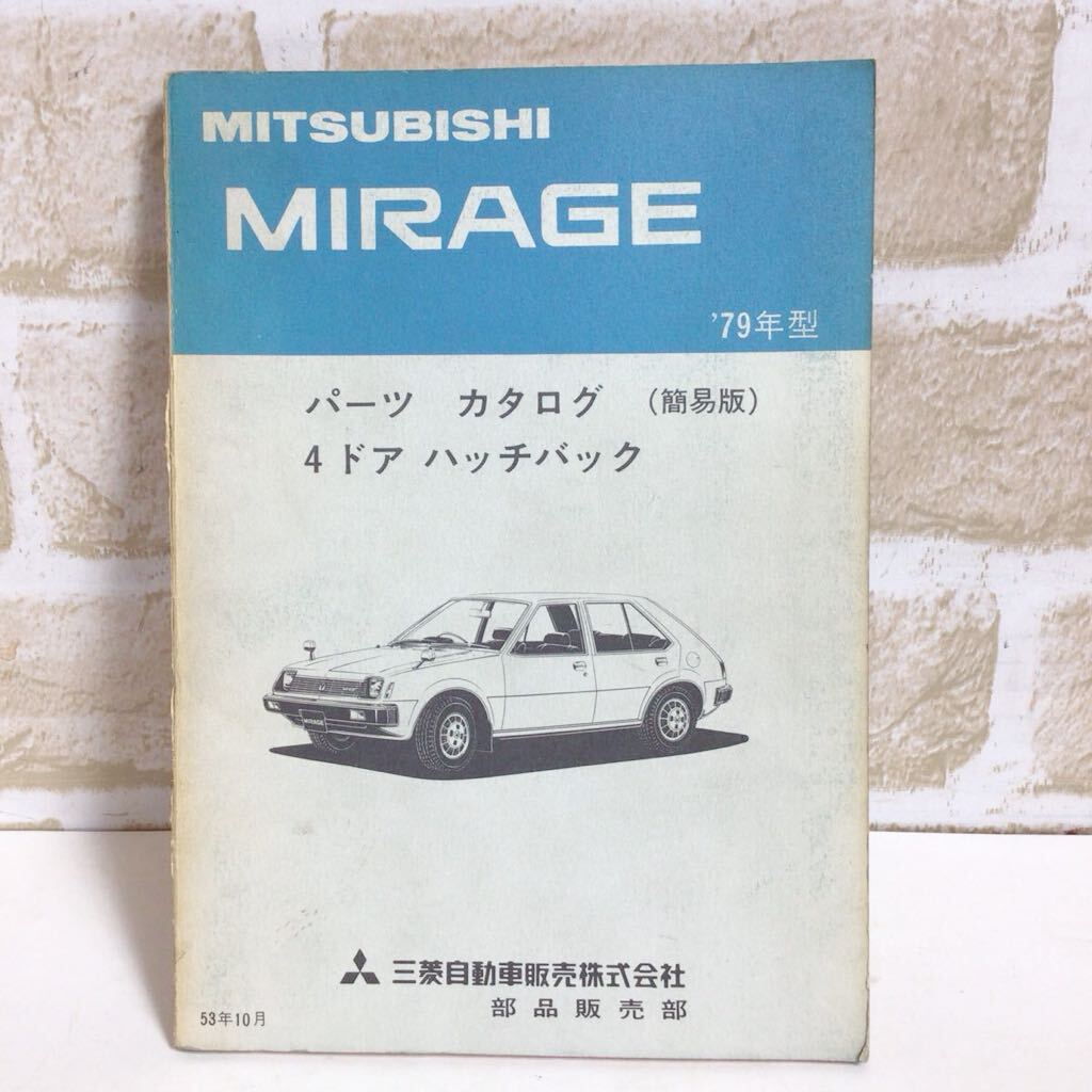 > 三菱 ミラージュ MIRAGE 79年型 4ドア ハッチバック 車検・外装パーツカタログ 53年10月発行 簡易版 旧車 整備