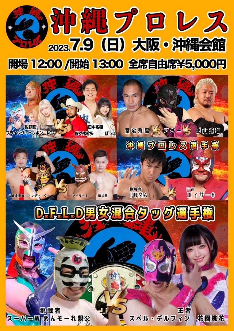 - 【沖縄プロレス 15周年記念大会】スペル・デルフィン&花園桃花 vs めんそ~れ親父&スーパーW【2023年7月9日 沖縄会館】
