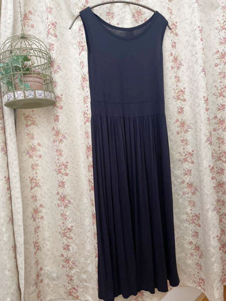 - 【未使用】紺 ネイビー ロング ワンピース ノースリーブ M L