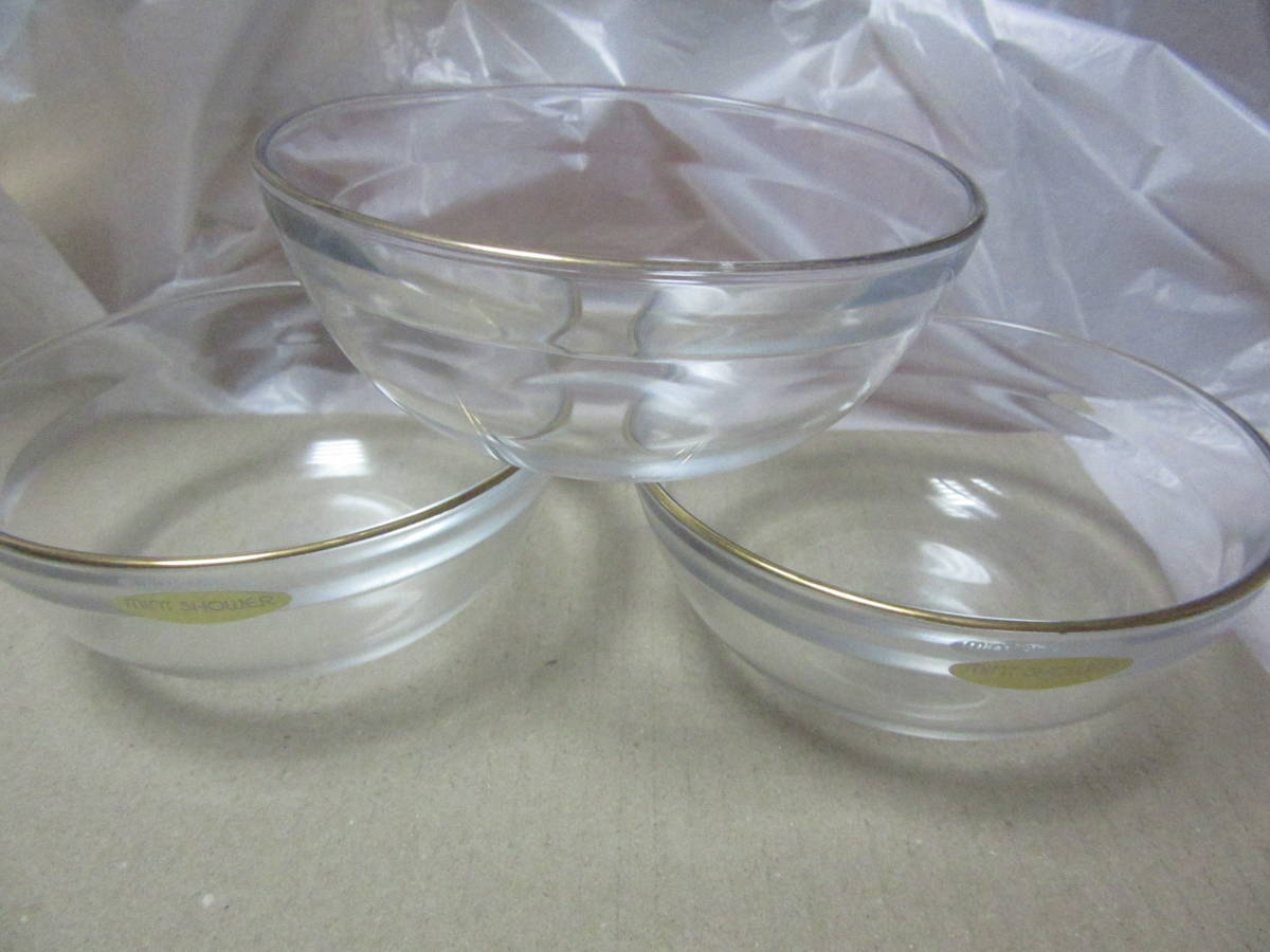 > ★未使用 金縁ガラスボウル MINT SHOWER サラダボウル ガラス小鉢 未使用2鉢+1鉢(中古) 計3鉢★