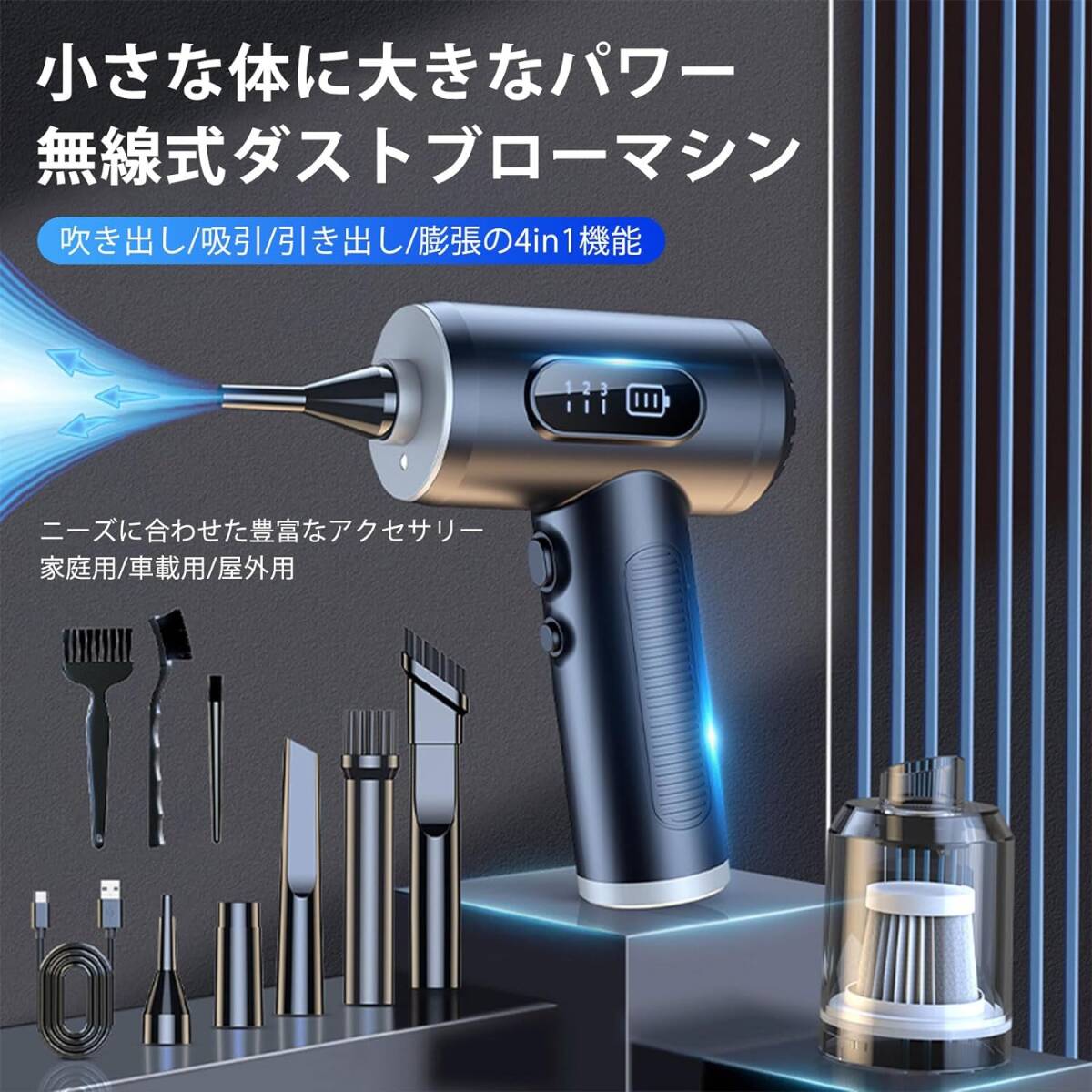 - 電動エアダスター 7500mAh大容量 6種類ノズル付き 3段階風力調整