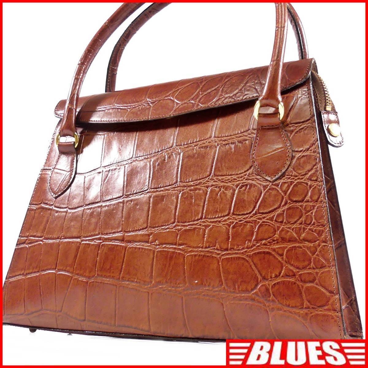 - 即決★ALAN FLUSSER★レザーハンドバッグ アランフラッサー メンズ 茶 クロコ型押し 本革 トートバッグ 本皮 かばん 鞄 レディース