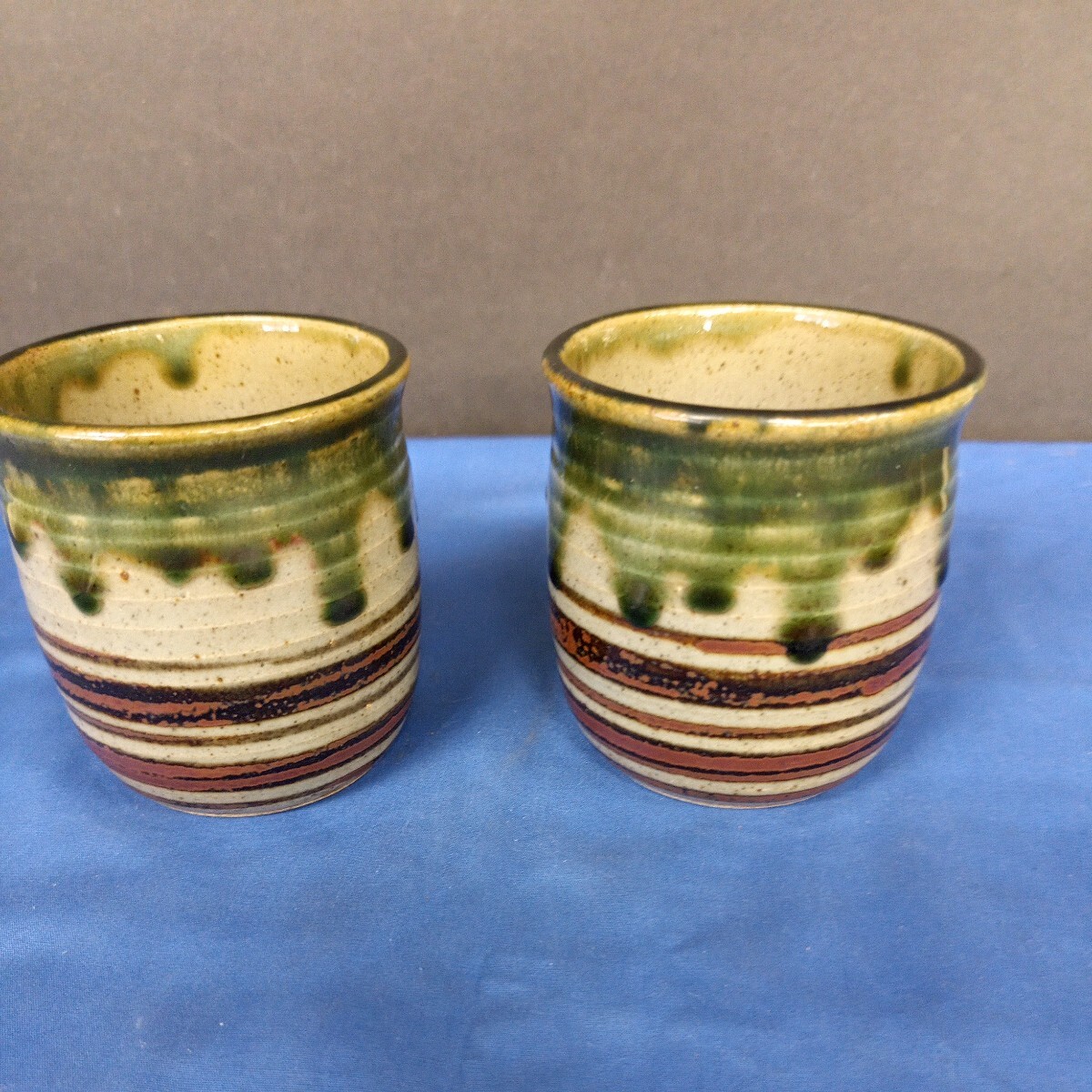 - 昭和レトロ■湯のみ 2客 刷毛 ペア 湯呑 和食器