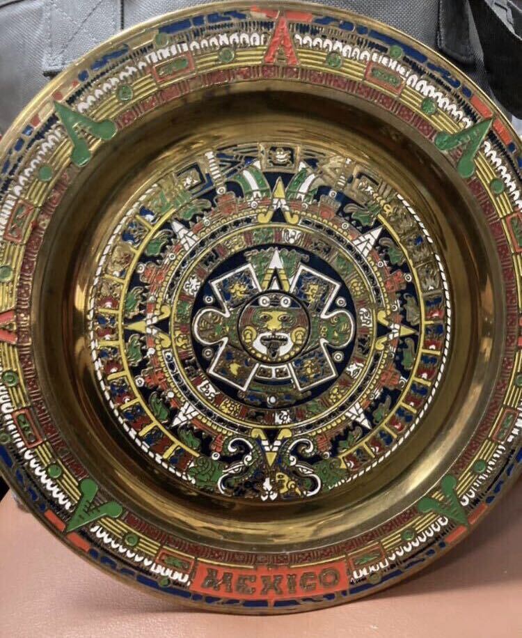 > YK-5678 #50 中古品 大皿 真鍮製 飾り皿 Mexico メキシコ 約27cm×約27cm #プレート #レトロ #アンティーク #お土産