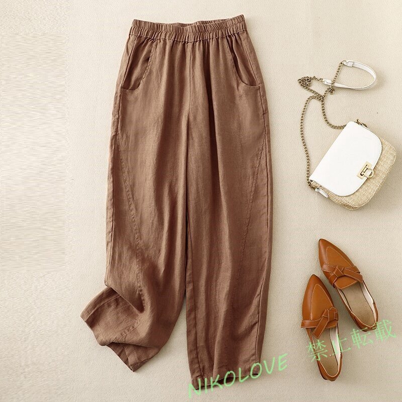 - 新品 夏ゆったり ボトムス ワイドパンツ レディース きれいめ リネン フレア ワイドパンツ 涼しい ウエストゴムパンツ オレンジ LG965
