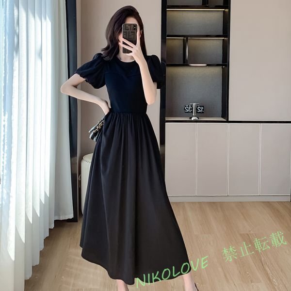 - 新品 ワンピース 夏 ミモレ丈 キレイめ 半袖 ロングワンピース aライン きれいめ 通勤 OL 着痩せ オシャレ フレアワンピースLH017