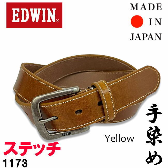 - イエロー EDWIN エドウイン 1173 日本製 手染め シングルステッチ ベルト ビジネス