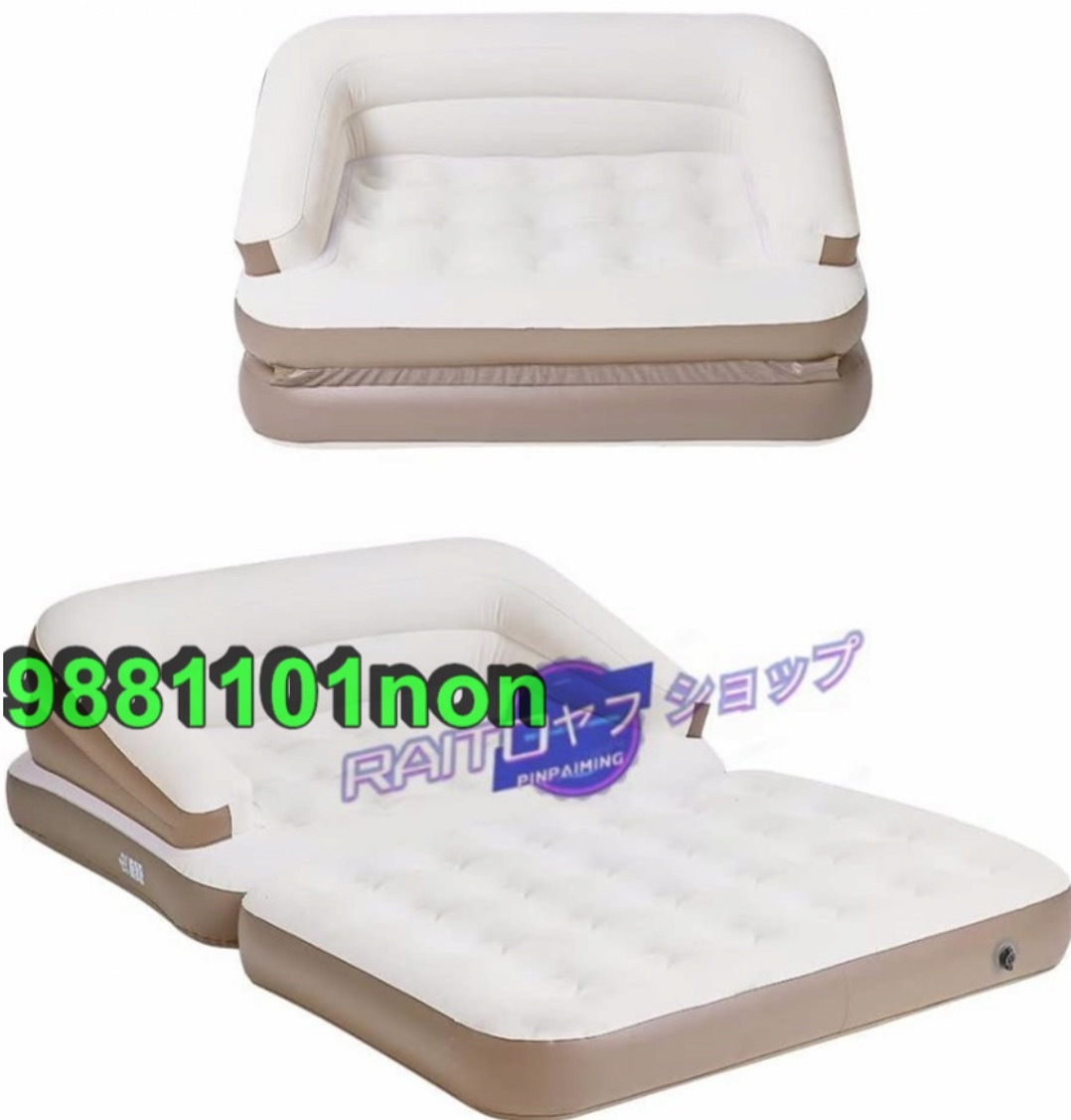 > 空気注入式 ポータブル ブローアップマットレス ソファベッド フロックトップ付き ダブルエアーソファ テント キャンプ/車 旅行 バックパッ