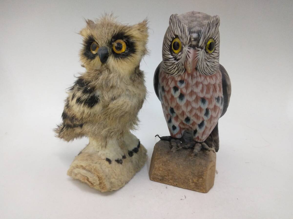 - 0714-0018 中古★フクロウ リアル オブジェ インテリア 置物 木 かわいい