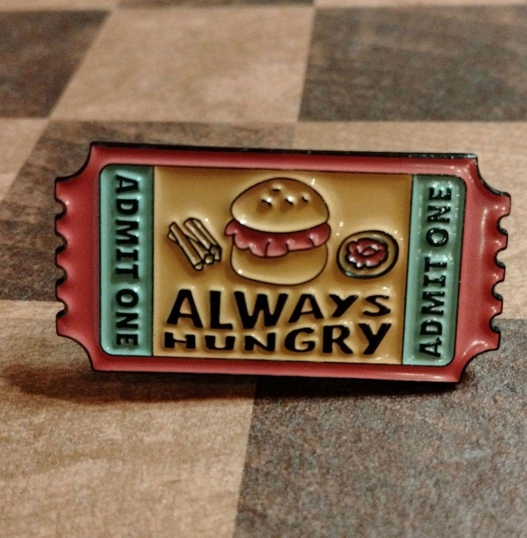 - 【ピンバッジ】メッセージチケット②ハンバーガー 常にお腹が空く 切符