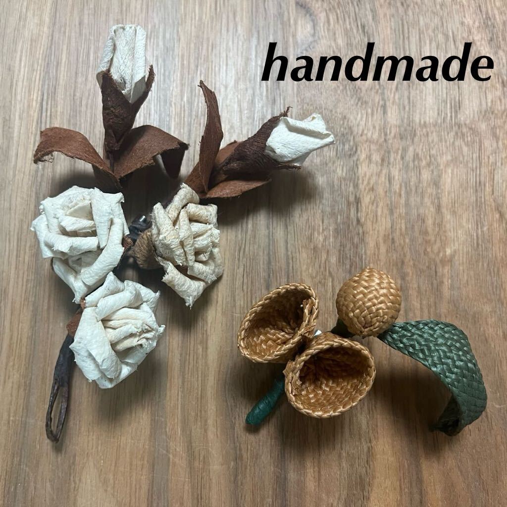 - アンティークフラワーコサージュ◇ラフィアコサージュ◇2点セット◇ハンドメイド◇