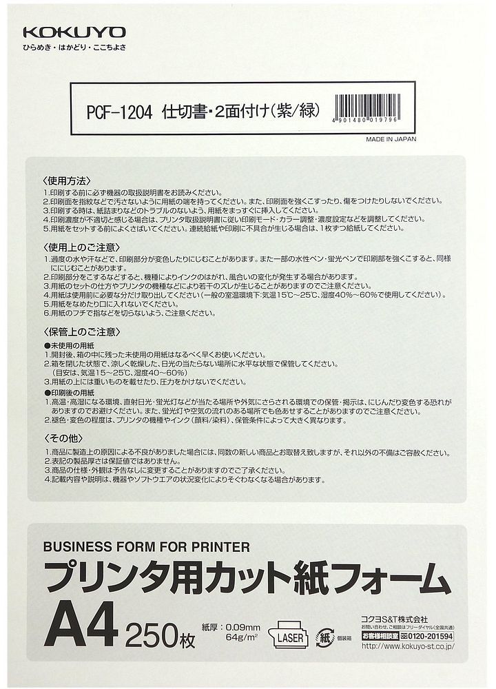 - (まとめ買い)コクヨ プリンタ用カット紙 フォーム 仕切り書二面付 A4 紫/緑 250枚 PCF-1204 〔3冊セット〕