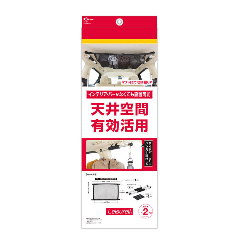 > 天井空間ネット 隙間収納 W850~1200×D500×H50mm 車内収納 吊り下げタイプ 小物置場 クレトム LS-27