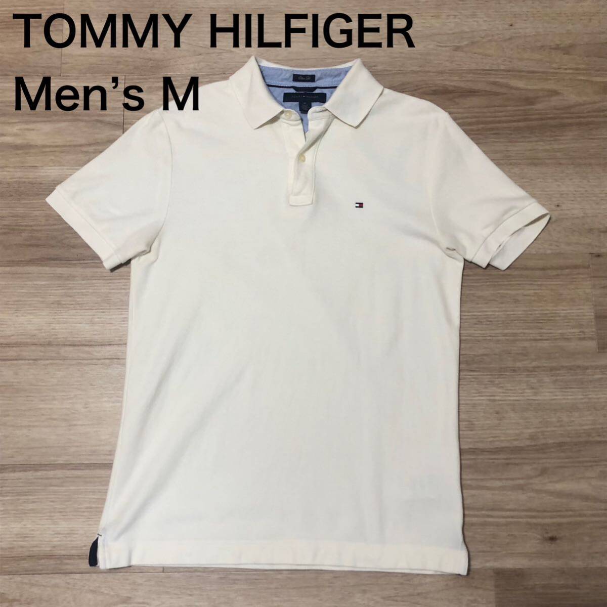 - 【送料無料】TOMMY HILFIGER半袖ポロシャツ クリーム色 メンズMサイズ トミーヒルフィガー