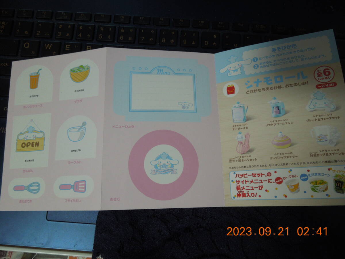 - シナモロール おみせやさんごっこシート / ハッピーセット マクドナルド / 非売品
