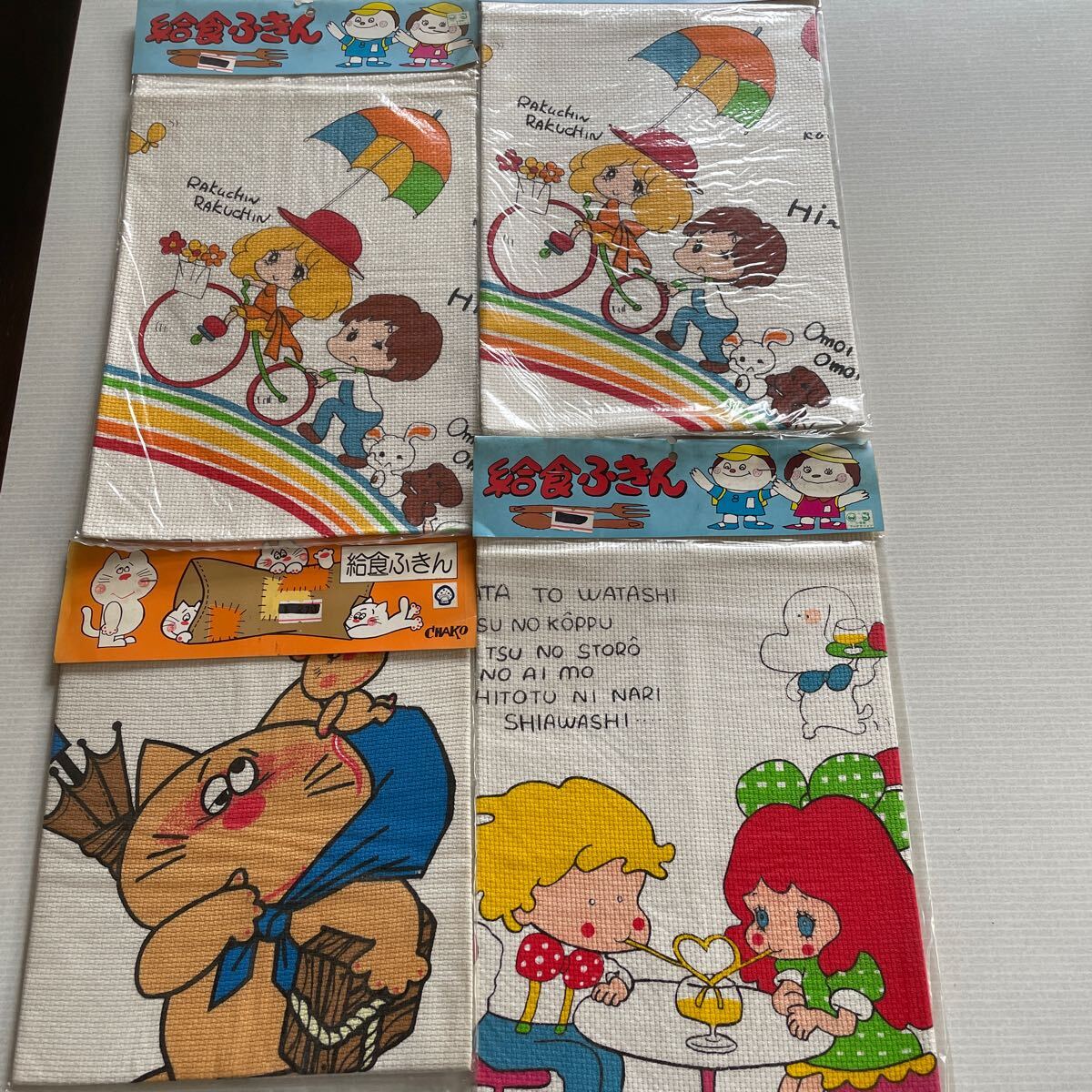 - 昭和レトロ 当時物 可愛いレトロキャラ 給食ふきんまとめて4枚 CHAKO 猫