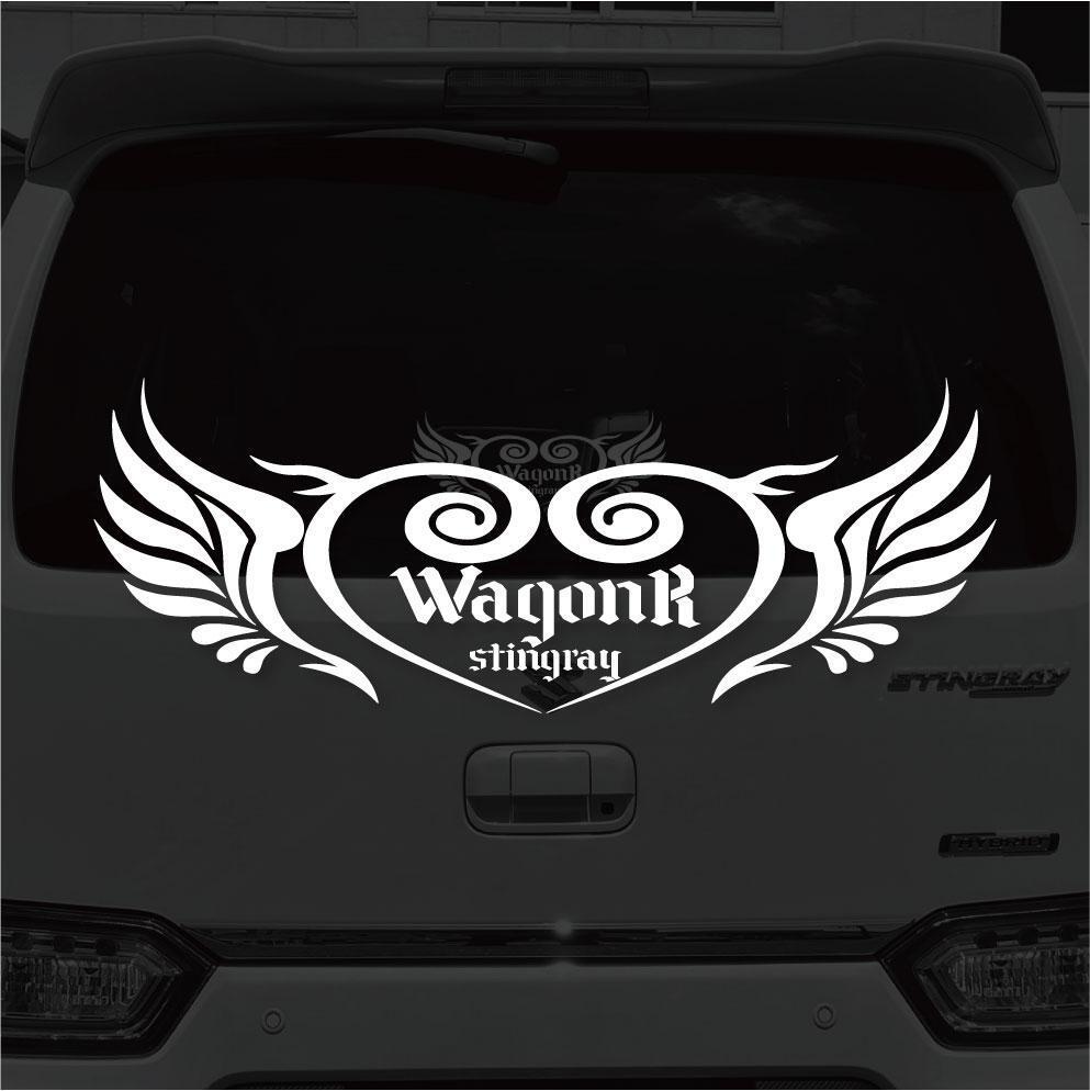 - ワゴンR スティングレー スティングレイ ハート 羽 ウイング ステッカー カッティングステッカー 白色