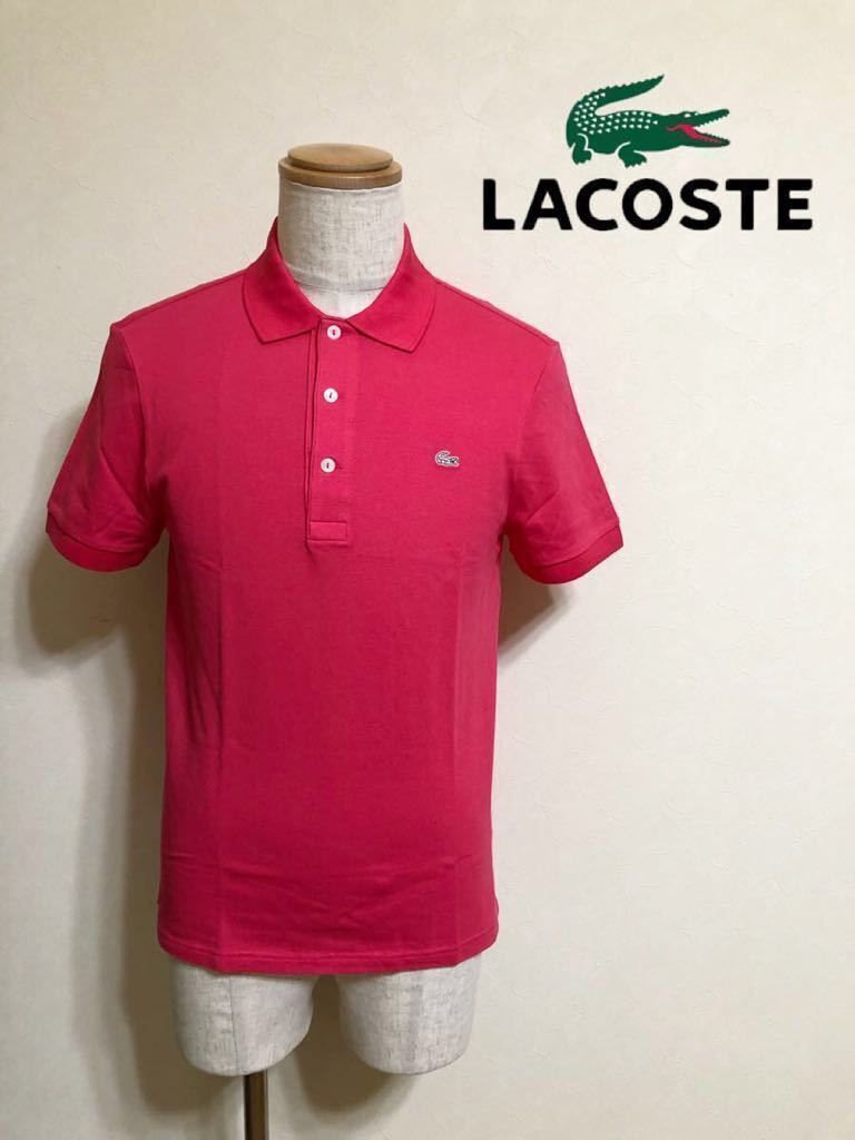 > 【美品】 LACOSTE ラコステ 鹿の子 ポロシャツ ピンク 銀ワニ サイズ4 半袖 ファブリカ 日本製 PH061C