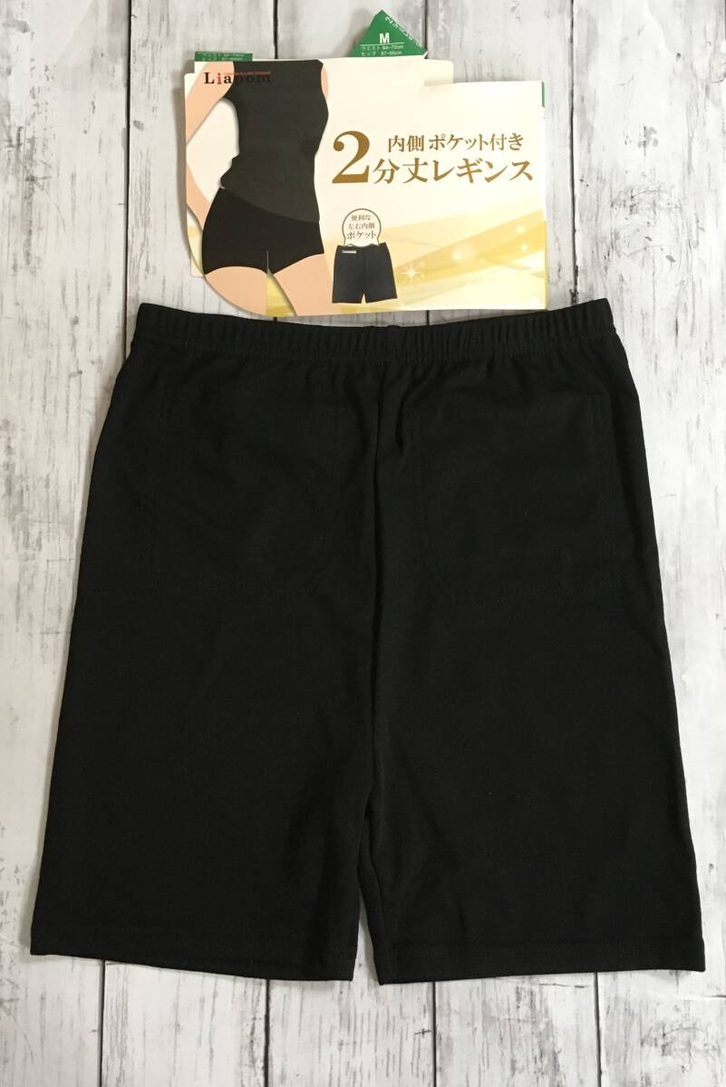 - ■送料無料 新品 M ブラック 2分丈 レギンス 内ポケット ポケット ウエストゴム ナプキン収納 54