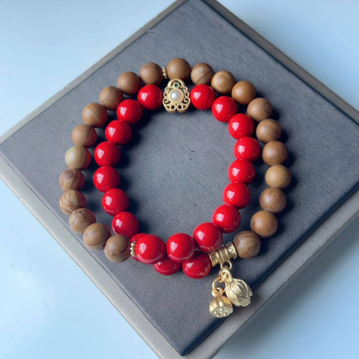 > ◇シナバー(辰砂)+木紋石◇ブレスレット◇天然石◇パワーストーン◇巾着袋付き◇プレゼント028B71901