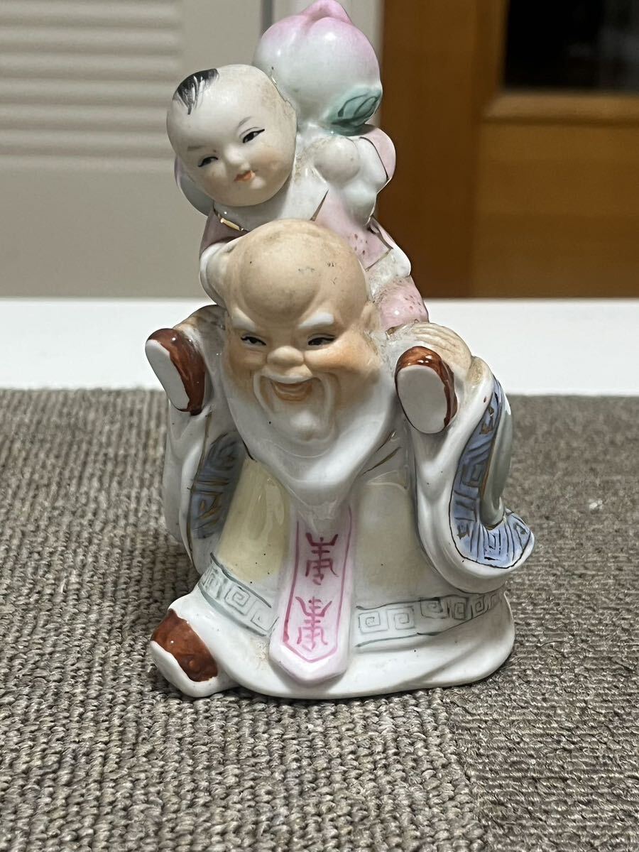 - 中国磁器の置物シューラオ、長寿の神子供付き